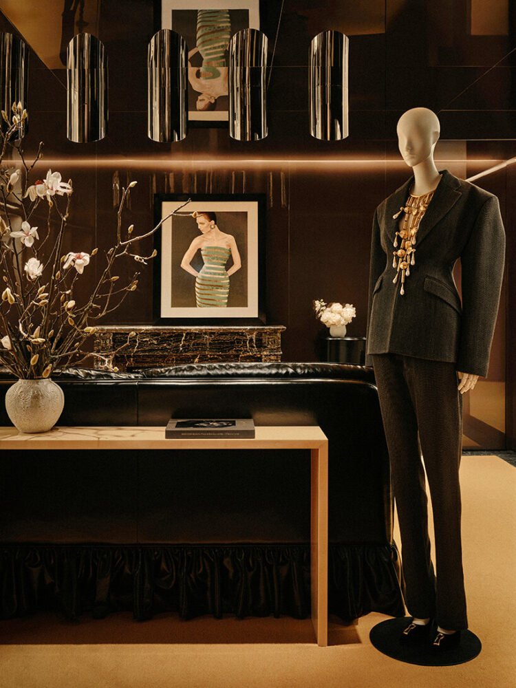 No coração de Hong Kong, o Salão Schiaparelli não é apenas uma loja, mas uma experiência arquitetônica que convida à contemplação e à apreciação de cada detalhe meticulosamente executado. Cada elemento, desde os nichos de mosaico dourado que integram a exposição diretamente na arquitetura, até as superfícies espelhadas que conferem ao espaço uma sensação de camadas e complexidade, contribui para uma narrativa espacial que privilegia um ritmo mais lento, permitindo que os visitantes se entreguem ao luxo e à beleza em seu próprio tempo.